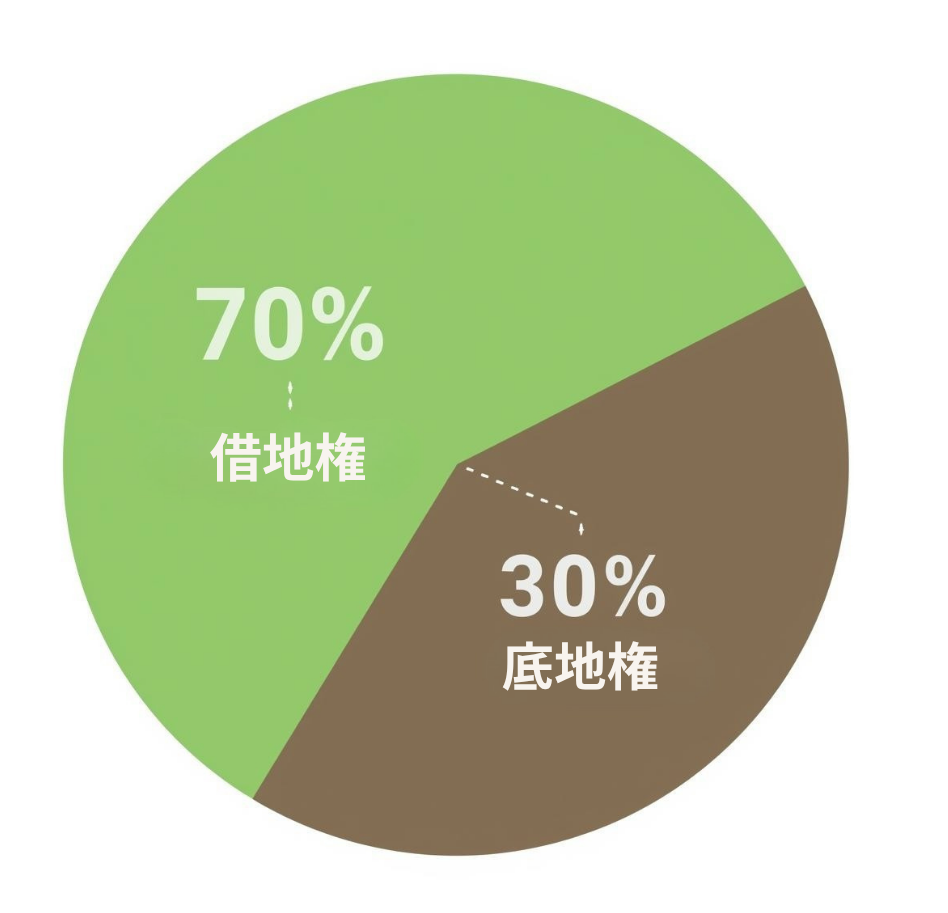国税庁の路線価図で地域ごとに定められていて、たとえば借地権割合が70%なら「その土地の7割の価値が借地権に相当する」と考えます。
